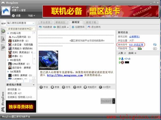 在左側(cè)菜單中選擇游戲,比如《山脊賽車(chē)2》,點(diǎn)擊菜單中的“山脊賽車(chē)2”,我們選擇電信區(qū),進(jìn)入游戲后,我們看到這個(gè)房間一共兩個(gè)人,除了wltqh代表我之外,還有另外一個(gè)玩家,這時(shí)你可以邀請(qǐng)他一塊進(jìn)行游戲了。